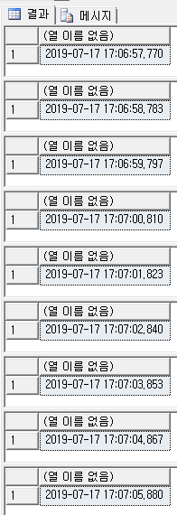 1부터 10까지 증가하는 코드이고, 그때마다 현재 시간을 찍어주는 SQL 코드이다.