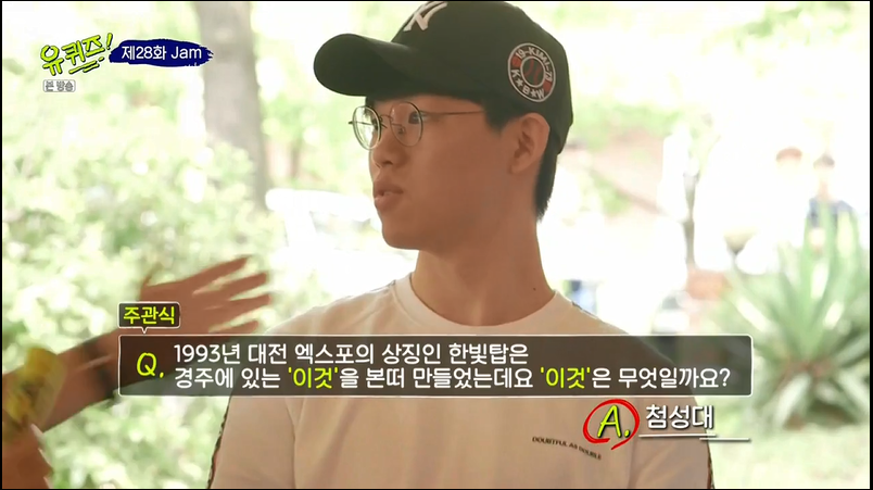 Q. 1993년 대전에서는요, 우리나라 최초로 국제 박람회가 열렸습니다. 대전 엑스포의 상징인 한빛탑의 기둥은 미래를 중간의 우주선 모양은 현재를 하단부는 과거를 표현하며 경주에 있는 '이것'을 본떠 만들었는데요. 이것은 무엇일까요?