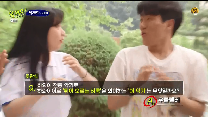 Q. 하와이 전통 악기인 '이것'은요, 연주하는 손놀림이 마치 벼룩이 튀는 모습과 비슷해서 이름이 붙여졌는데요. 하와이 전통 악기로 하와이어로 '튀어 오르는 벼룩'을 의미하는 '이 악기'는 무엇일까요?