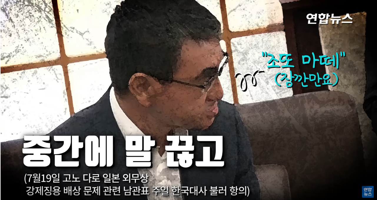 우리나라 외교부장관급인 고노 다로 일본 외무상은 우리나라 한국 대사를 불러 이야기를 할때 말을 끊기도 했습니다.