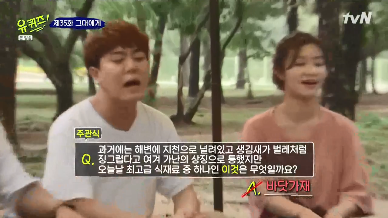 이번에는 한국종합예술학교에서 연희과를 다니는 선후배 학생이 나왔습니다. 연희과라는게 풍물, 탈춤, 무속, 전문예인집단 연희 등 한국전통예술을 실기 중심으로 학습하는 전공 학과라고 합니다. 이런과가 있다는것에 놀랬고 대단해보였습니다. 우리 나라 전통을 이어가는 모습에도 멋있어 보였습니다. 문제는 과거와 현재에 상반대로 취급받는 식재료가 문제로 나왔습니다. 바닷가재가 정답인데, 이것을 죄수나 하인들이 먹었다는게 믿겨지지가 않습니다.
