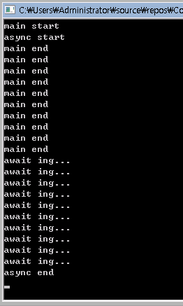 테스트한 결과를 보니, Caller 메서드에서 비동기 메서드인 MyMethodAsync를 호출하고 난 다음, await 키워드를 만났을때부터 각기 다르게 실행됩니다. 결과에서는 main end 로그를 다 찍히고, await ing, async end 로그가 찍혔지만 이거는 순서가 테스트할때마다 달라졌습니다.