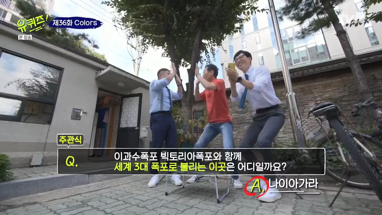 유쾌하신 아파트 주민회장분이 나오셨습니다. 그리고 35년간 회사를 다니셨고 최근에 정년퇴임을 하셨다고 합니다. 열심히 일하셨으니, 이제는 편안하고 여유롭게 노후를 즐기셨으면 좋겠다는 생각을 했습니다. 본인도 여유롭게 살면서 아파트 주민 회장직을 열심히 하겠다고 하시는데, 너무 유쾌하셨습니다. 문제는 조오금 쉽네요. 나이아가라말고 이과수폭포와 빅토리아폭포가 나왔으면 저는 못 맞췄을 거 같습니다. 그래도 세계 3대 폭포 중에 가장 유명한 나이아가라가 나와서 맞췄습니다!ㅎㅎ