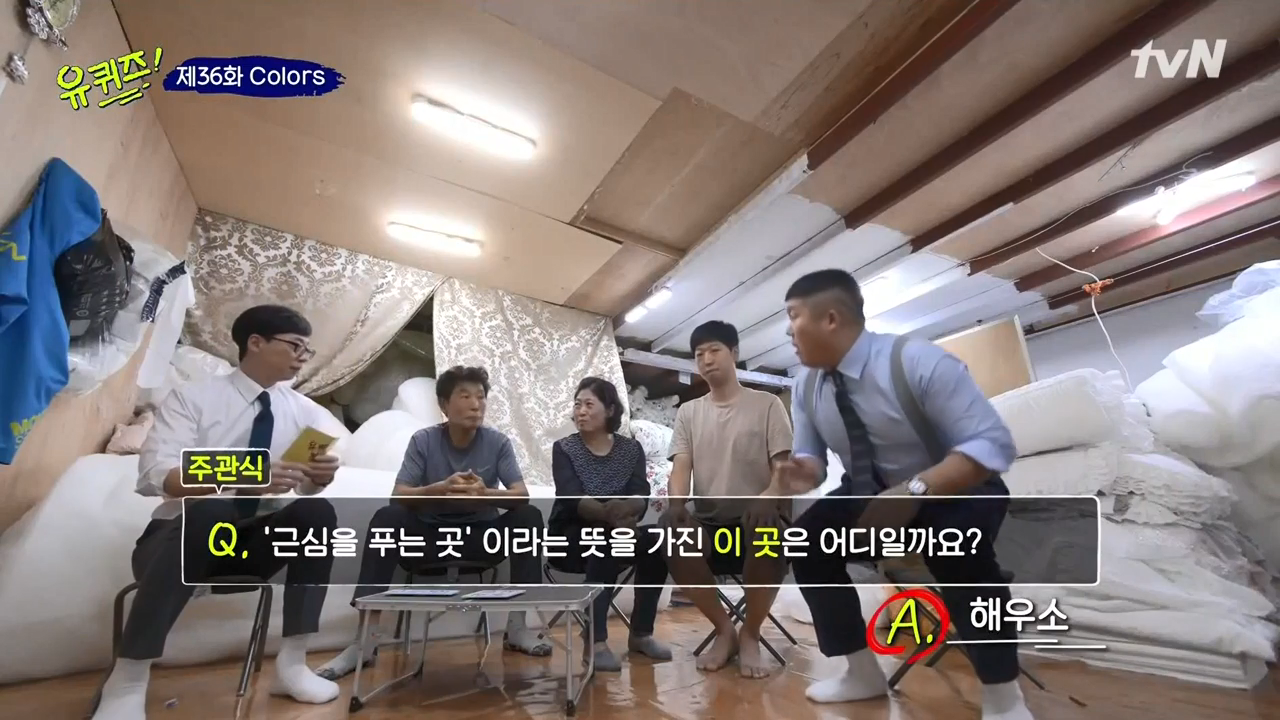 이번 편에서 가장 웃겼던 시민분들이었습니다. 아버지, 어머니, 아들 3명이서 같이 이불가게를 한다고 합니다. 어머니가 사장이고, 아버지 말씀으로 시다라고 말씀하시는데, 보조역할을 하고 계시다고 합니다. 가족끼리 같이 일을 하다보면 싸울 수 밖에 없는데, 역시나 여기 가족분들도 자주 싸우신다고 합니다. 그래도 가족들이랑 일하면 조금 편하게 일 할 수 있는거 있지 않을까 싶습니다. 문제는 아버지께서 정확하고 덤덤하게 맞추셨습니다. 머리를 숙여 아래를 보지 말 것, 그리고 근심을 푸는 곳. 해우소 였습니다. 이러한 문구가 절에 붙어있다고 합니다.