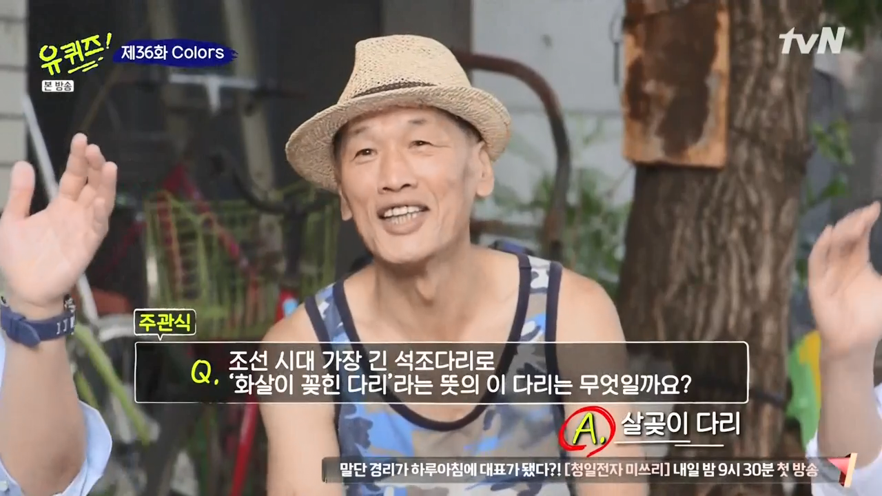 수제 구두가게를 하시는 아저씨가 나오셨습니다. 자유롭게 옷 입으신 거 보니ㅎㅎ푸근한 인상의 아저씨가 나오셨습니다. 100만원을 타면 기부부터 하신다고 하셨는데, 마침 문제가 1+1 문제여서 맞추면 자연스럽게 기부까지 할 수 있는 찬스가 나왔습니다. 마음씨를 착하게 가지니, 모든 게 잘 풀리시는 거 같습니다. 문제도 조선시대에 생긴 가장 긴 석조 다리를 맞추는 문제였는데, 성수동 근처에 있는 살곶이 다리라고 합니다. (저는 알턱이 없겠지만) 동네에 있는 거라 잘 아셨던 거 같아요. 축하드립니다!ㅎㅎ