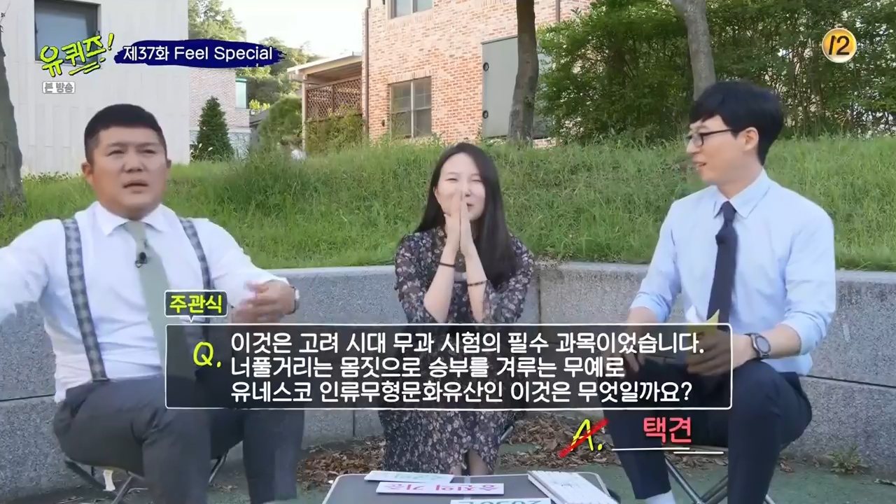이번 문제는 민족 고유의 전통 무예를 맞추는 문제입니다. 고려시대 무과 시험의 필수과목이자, 너풀거리는 몸짓으로 승부를 겨루는 무예로 유네스코 인류무형문화유산인 이것은 무엇일까요? 답은 택견이네요. 들으면 아는 단어여도 답은 항상 못 맞춥니다.ㅜ.ㅜ