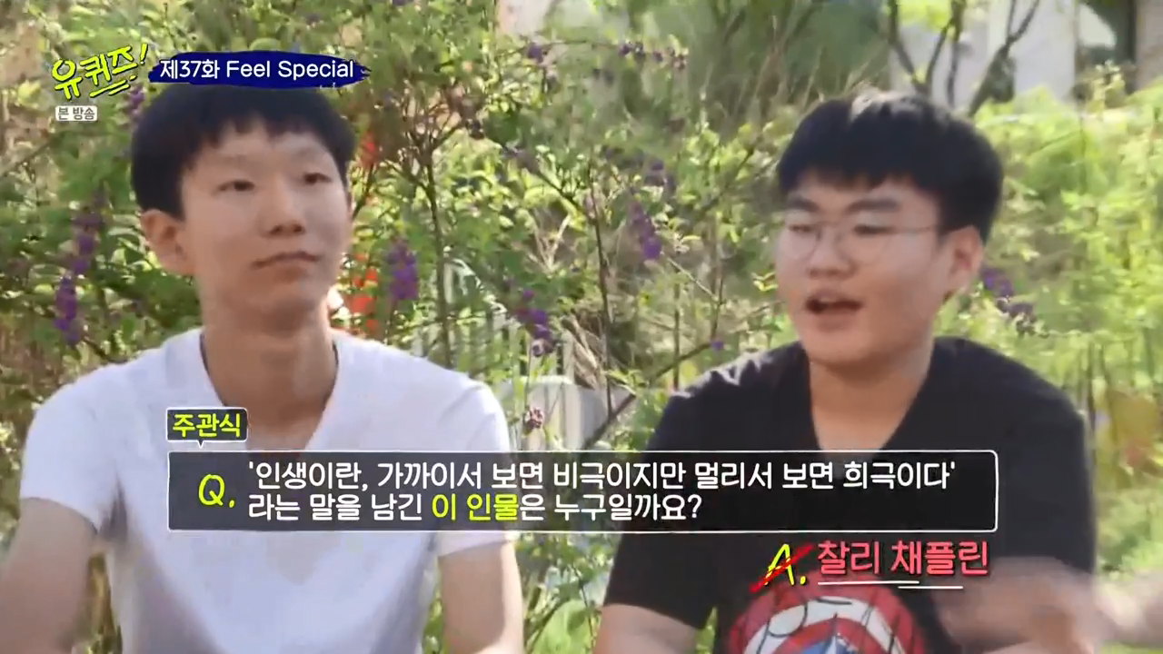 문제는 20세기 가장 위대한 희극인으로 <모던 타임즈>, <황금광 시대>로써, '인생이란, 가까이서 보면 비극이지만 멀리서 보면 희극이다' 라는 말을 남긴 이 인물에 대해 맞추는 문제였습니다. 모던 타임즈를 보니 딱 찰리 채플린이라는 걸 저는 알았습니다.ㅎㅎ