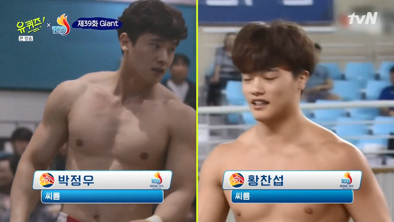이번에 나온 선수는 씨름에 박정우/황찬섭 선수입니다. 박정우 선수는 몸도 좋고 얼굴도 잘생겼드라구요. 부인도 잠깐 나왔었는데 박정우 선수의 수식어로 존잘이라고 하는데, 비방용이지만 왜 이렇게 웃기는지ㅎㅎ