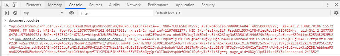 - document.cookie 를 누르면 현재 브라우저가 가지고 있는 쿠키 정보를 가져온다.