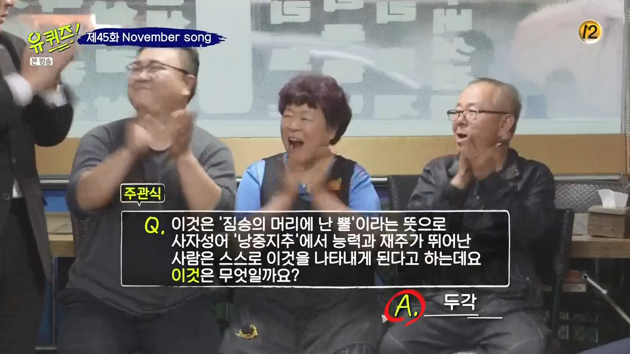 Q. 이것은 '짐승의 머리에 난 뿔' 이라는 뜻으로 사자성어 '낭중지추'에서 능력과 재주가 뛰어난 사람은 스스로 이것을 나타내게 된다고 하는데요. 이것은 무엇일까요?