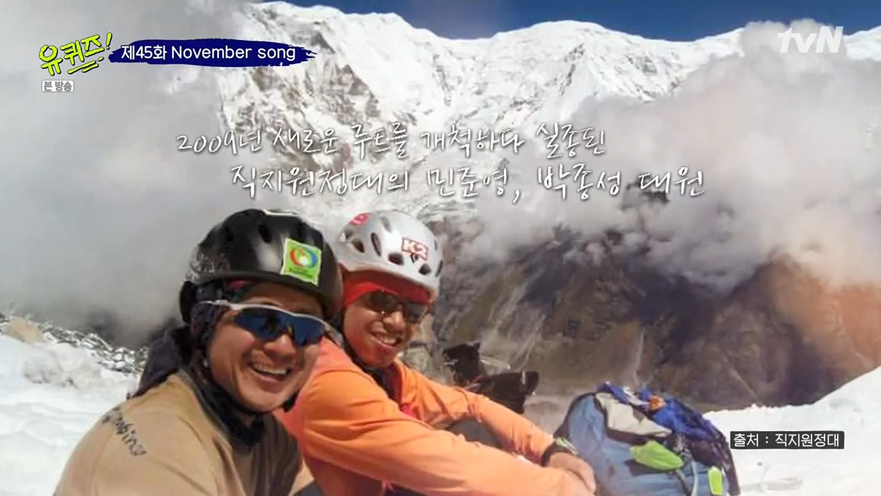 2008년 직지원정대가 무병봉을 등정하여 붙인 이름을 직지봉이라고 합니다. 2009년 새로운 루트를 개척하다가 실종된 직지원정대의 민준영, 박종성 대원.