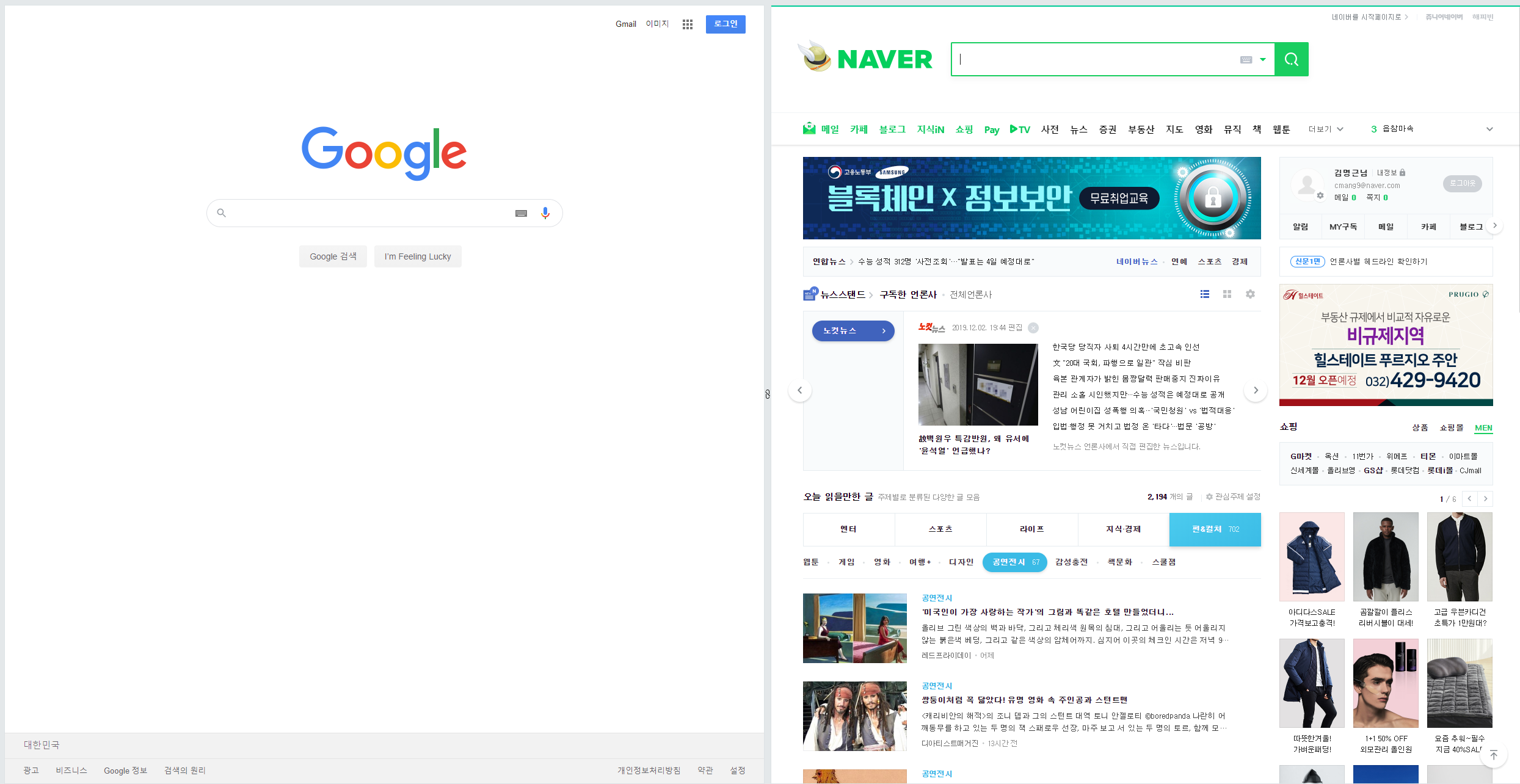 구글은 심플하게 검색창만 존재하지만, 네이버는 이것저것 덕지덕지 다 붙여놨다고....
